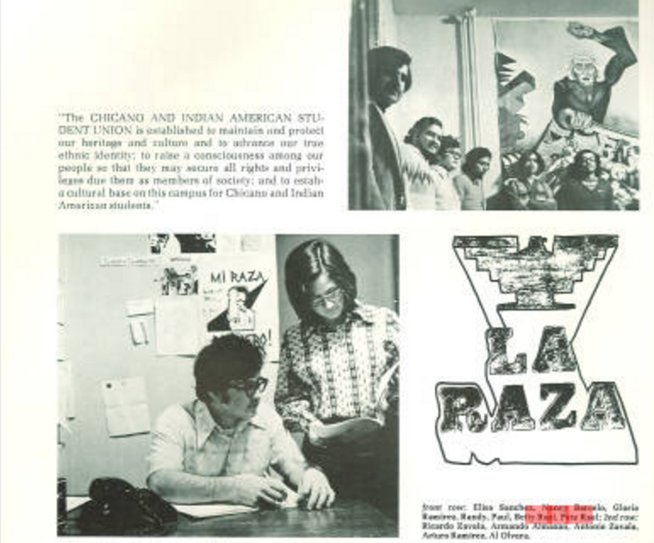 [Rael is shown, seated, at right, during his activist days with radical Chicano Power organizations, during which times he worked closely with Caballero.]